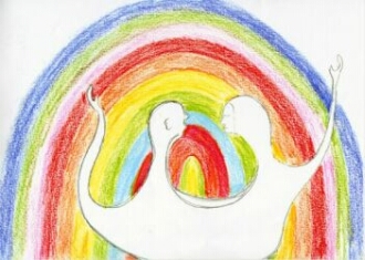 Eine monatelange Leidenszeit begann, und Michael fand in seinem letzten Lebensjahr zum Malen als neuem Ausdrucksmittel. Durch Schreiben und Malen setzte er sich mit seiner Krankheit auseinander. Sein Freundeskreis begleitete und trug ihn. Seine Schwester Agnes kochte für ihn und zog in das Nachbarzimmer, um ganz für ihn da zu sein. |